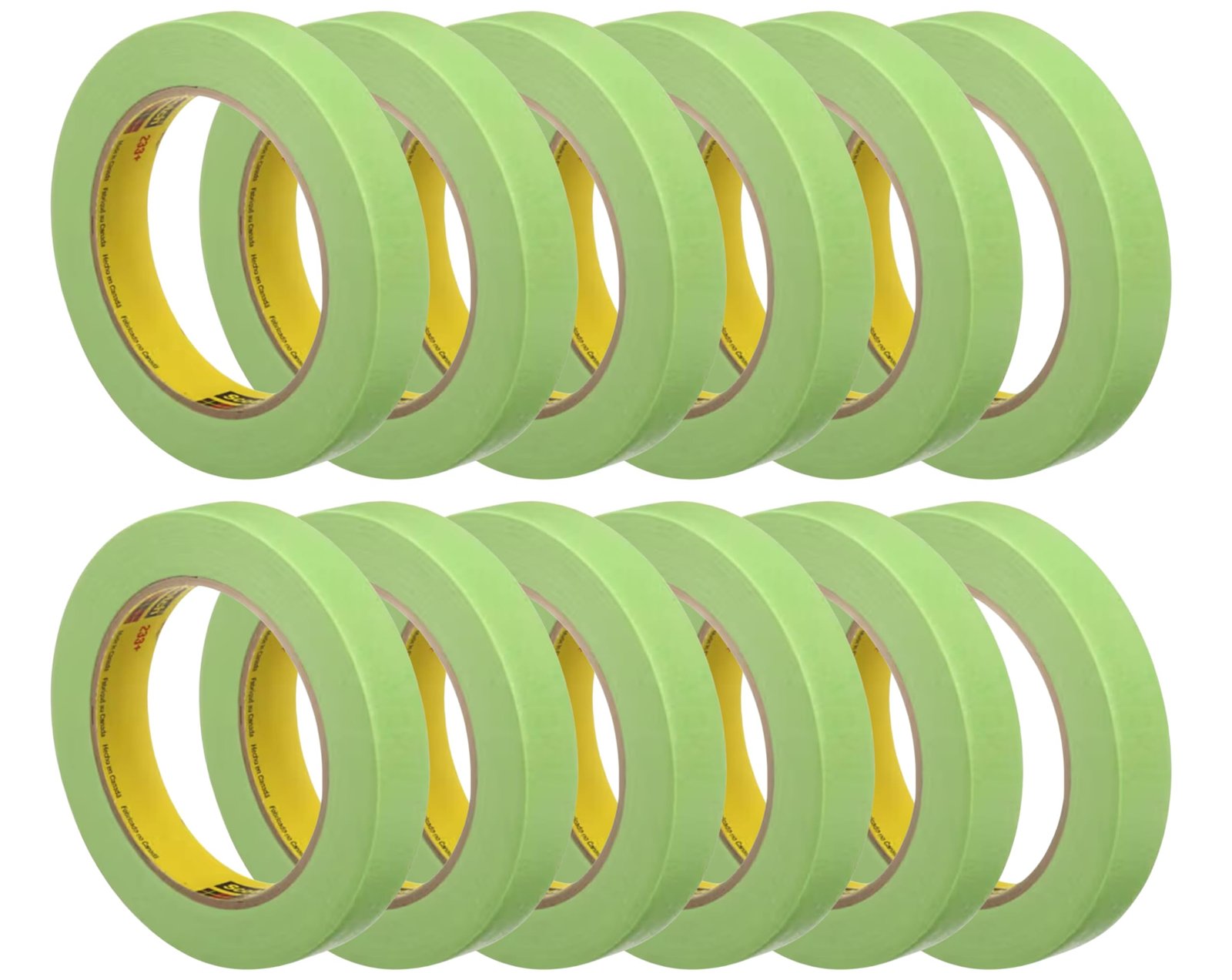 The 3M 233+ Green Masking Tape 26334 is a premium high-performance masking tape designed for automotive and industrial painting. The pack contains 12 rolls measuring 0.75″ x 60.1 yd each, providing ample supply for various projects. This tape offers superior adhesion to metal, rubber, glass, and plastic, ensuring clean paint lines. It removes cleanly without leaving residue, even at high temperatures.