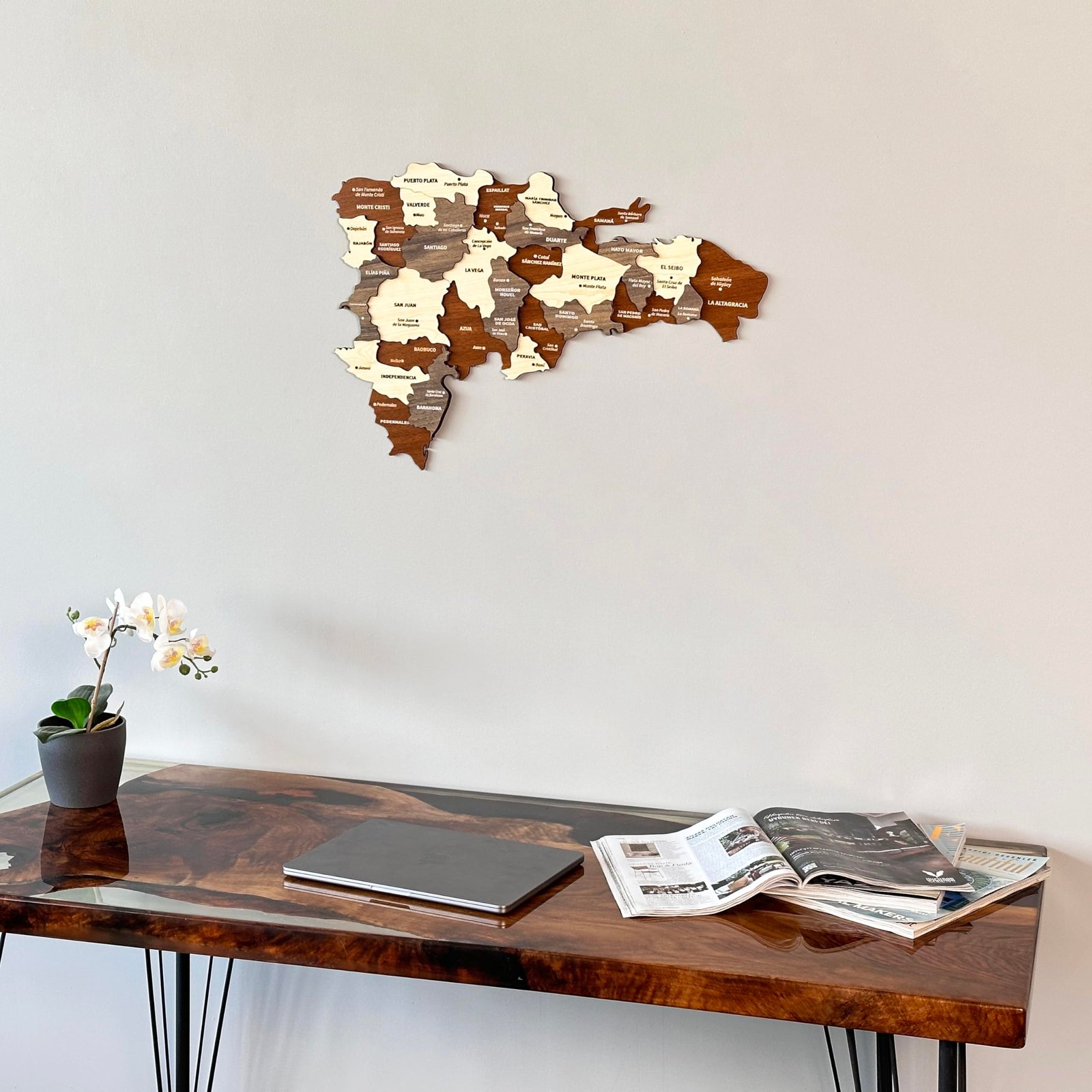Transform your space with the elegance of the 3D Dominican Republic Wooden Wall Art. Celebrate the vibrant essence of this Caribbean country with intricately engraved city names. Handcrafted from high-quality wood, this piece is a tribute to the Dominican Republic’s rich heritage, creating a unique touch in any home. Available in various sizes to suit different spaces and preferences. Embrace the beauty of handcrafted decor and elevate your living space with this culturally inspired piece. Made in Türkiye