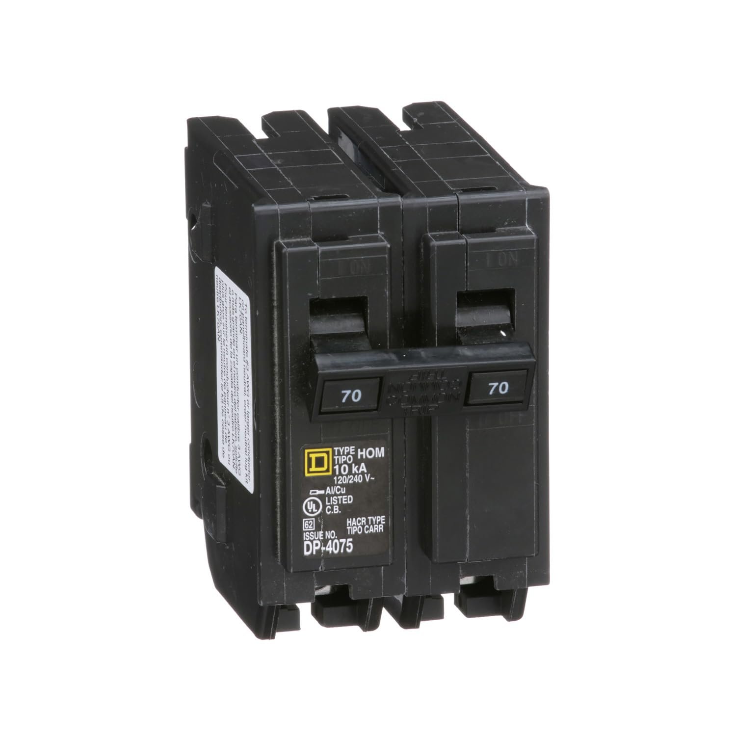 - 70A Two-Pole Design: Provides protection for larger appliances like dryers, ranges, and air conditioners.