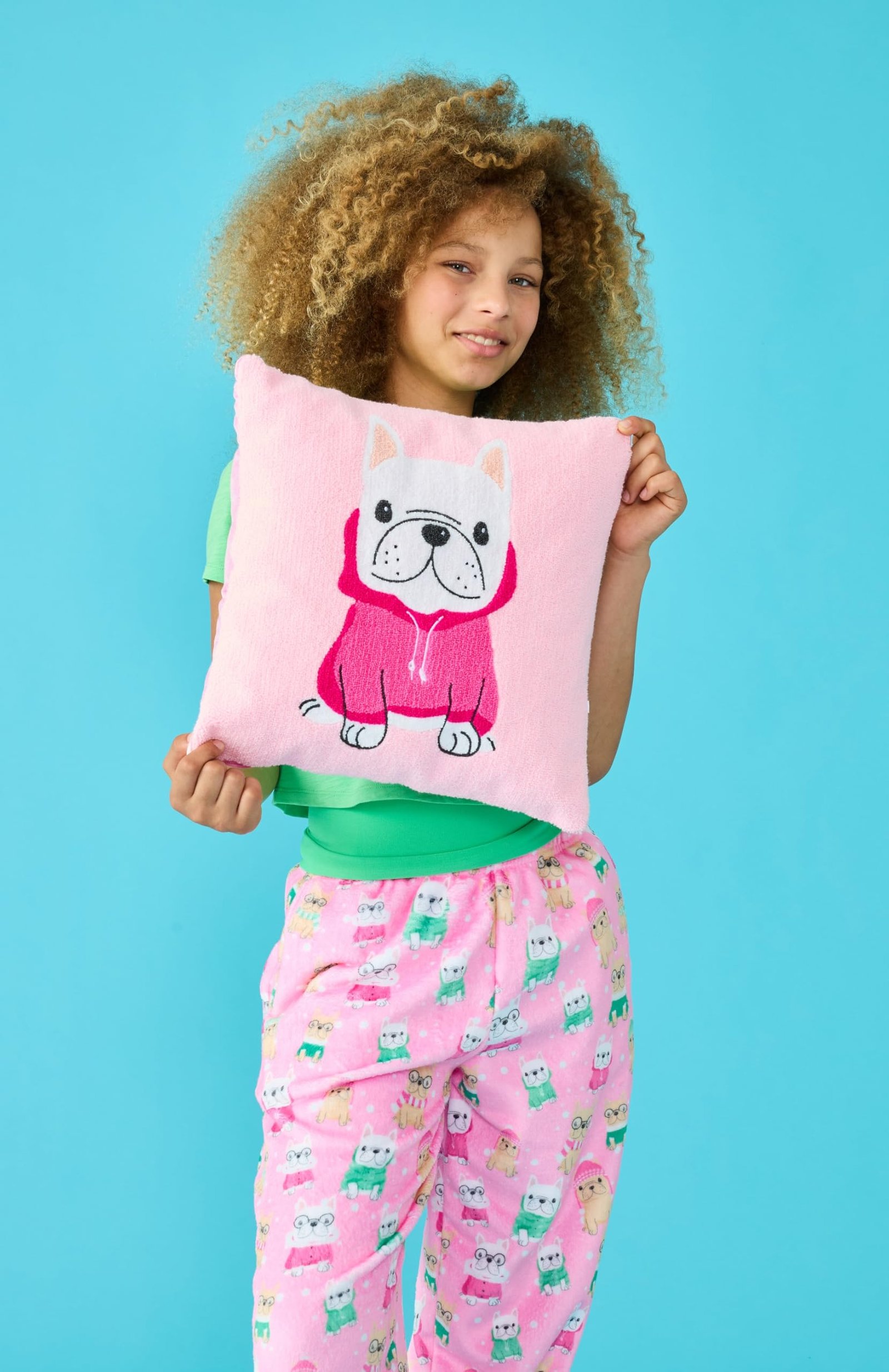 There’s always room for one more fun, bright, cool, comfy throw pillow – especially when it’s as fun as this oh-so-cute chenille pillow! This joyful, perfectly pink pillow features a darling French bulldog sporting a hoodie all set for a walk around the town that’s ready to liven up any space. And it isn’t just fun to look at – this softy is filled with 100% polyester fiberfill so it’s never lumpy or bumpy! Sizable pillow measures 14″ wide x 14″ high x 4″ deep. The perfect combination of colorful fun, to-die-for design, quintessential quality and cozy comfort – just what you expect from iscream! At iscream we are obsessed about fun, function and style. With tasteful, upscale accessories and gifts designed in the USA by United States moms since 2014, you can always count on iscream for product quality and longevity. See our whole line for new ideas and old favorites with a new twist!