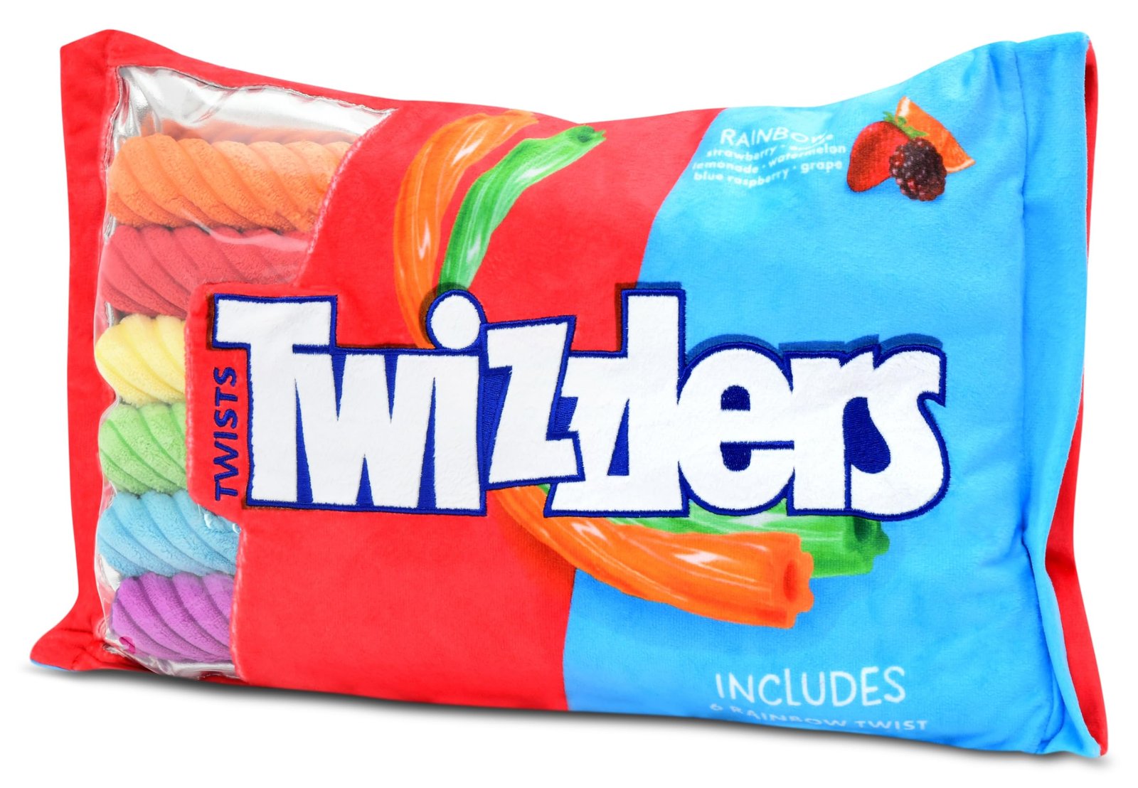 - Colorful & Cozy: Six plushie Twizzler-shaped pillows inside