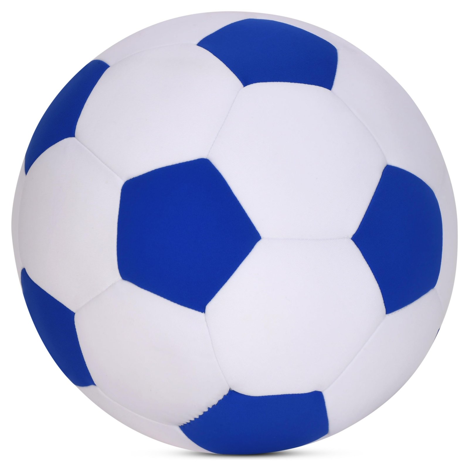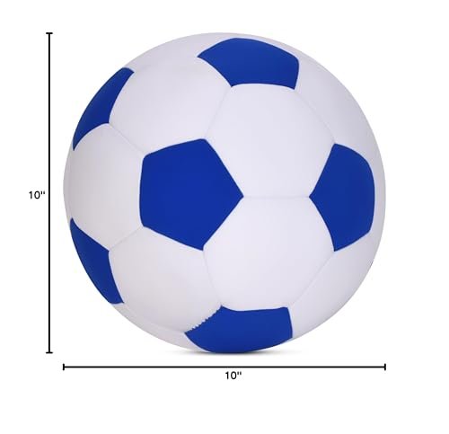 This round soccer ball pillow features metallic blue hexagons and vibrant colors. Filled with microbeads for comfort. Measures 13″ wide x 13″ high x 13″ deep with photo-real print on both sides.