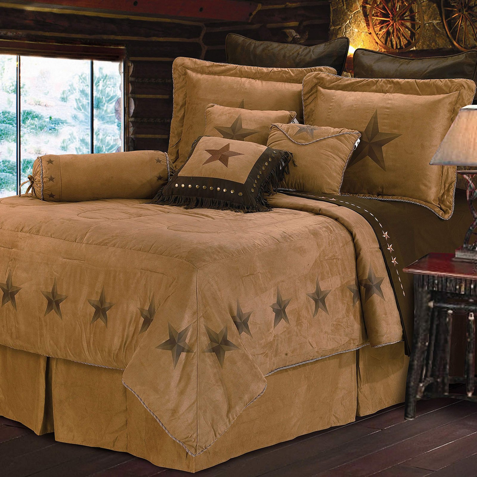 Rustic Star takes your bedroom to the heart of the West. The iconic western star is set in supple faux suede, embellished with traditional Western elements. Complete the look with coordinating accessories.
