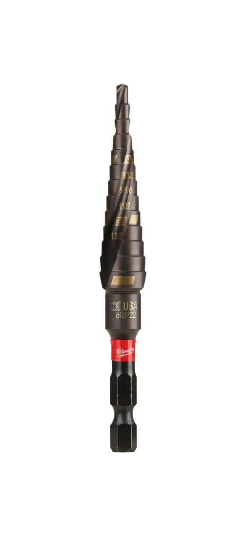 Milwaukee’s SHOCKWAVE Impact Duty Step Bits are engineered to provide durable and fast hole drilling. Made in the USA with global materials, these bits offer top performance in impact drivers and are versatile for drill use. The 1/4 hex shank features an optimized SHOCKZONE for durability, reducing shank breaks early on. With a Titanium Aluminum Nitride (TiAlN) coating for 5x longer life, and a Rapid Strike tip combined with dual spiral flute for 2x faster holes drilling. Pack of 1