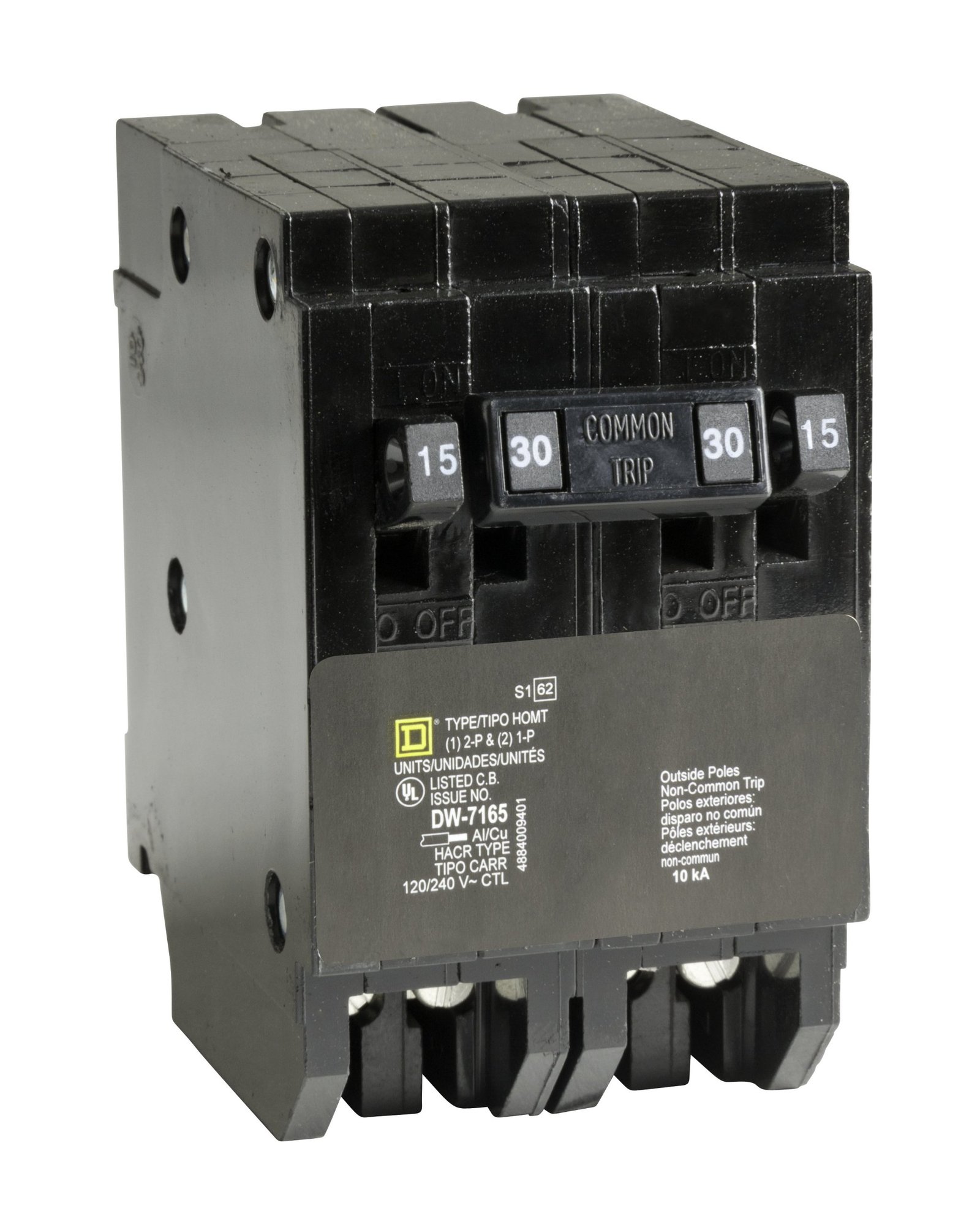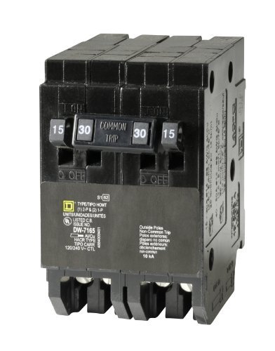 The Square D by Schneider Electric Homeline Quad-Pole Tandem Circuit Breaker consists of (2) single-pole, 15 Amp and (1) double-pole, 30 Amp breakers. Used for overload and short-circuit protection. Compatible with Homeline load centers and CSED devices. ANSI-certified and UL-listed for 120/240 VAC and 10,000 AIR. Homeline circuit breakers offer residential market exclusivity and quality.