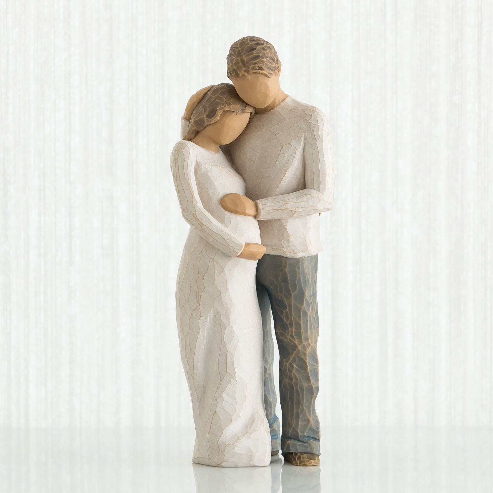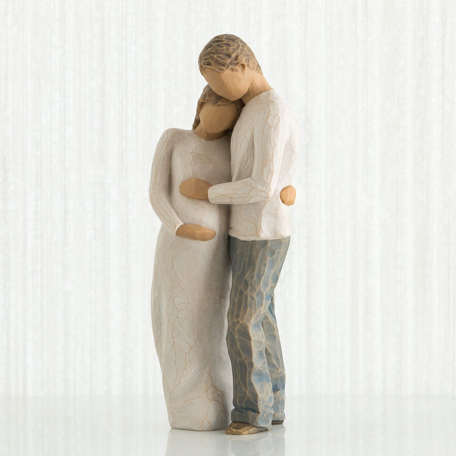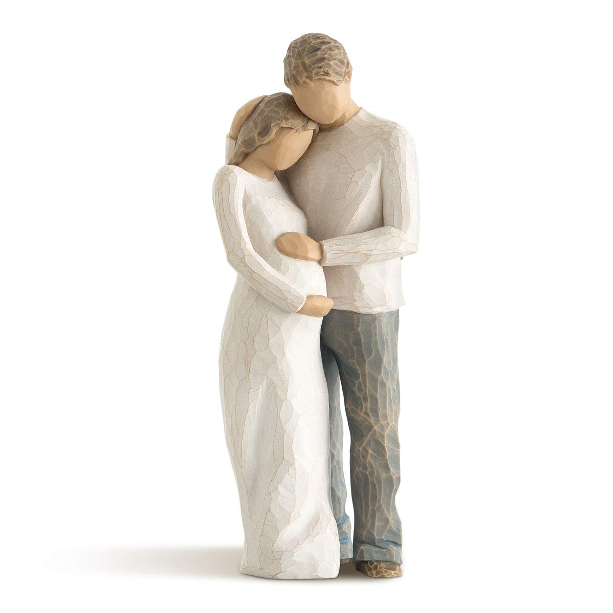 - Sentiment: Celebrate new beginnings with this 8.5”h hand-painted resin figure of a man and pregnant woman embracing.