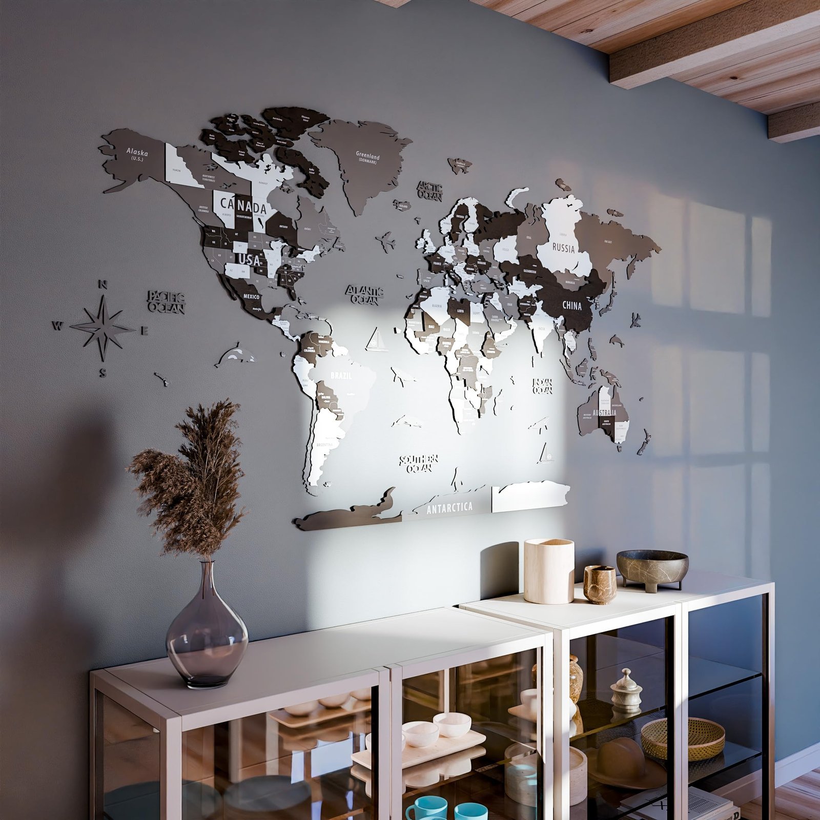 Introducing the Wooden World Map, a perfect wall decor piece that is both educational and beautiful. This map includes Country Capitals and States for select countries, making it an engaging learning tool. Available in multiple sizes to suit your space. Teach your kids about the world in a decorative way and spend quality family time. Ideal gift for special occasions, comes in deluxe packaging. All-Inclusive concept with ocean names and various accessories. Easy installation with adhesive tape included.